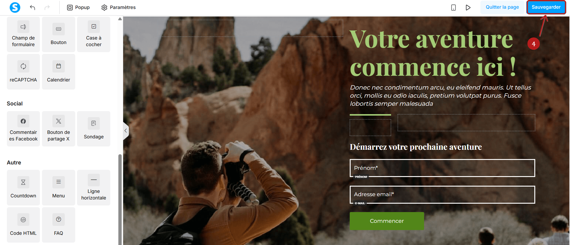 Enfin, cliquez sur "Sauvegarder" pour enregistrer les modifications apportées (4).