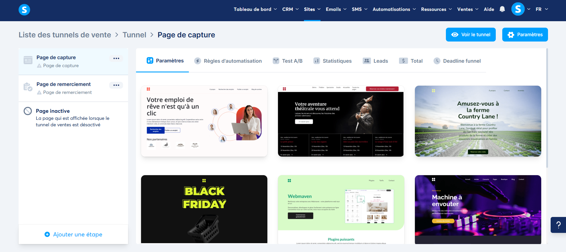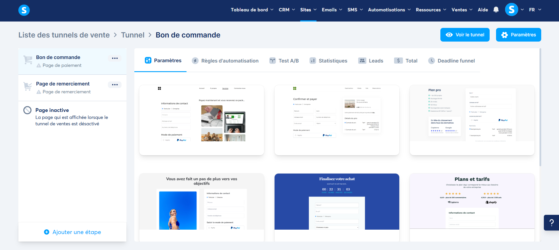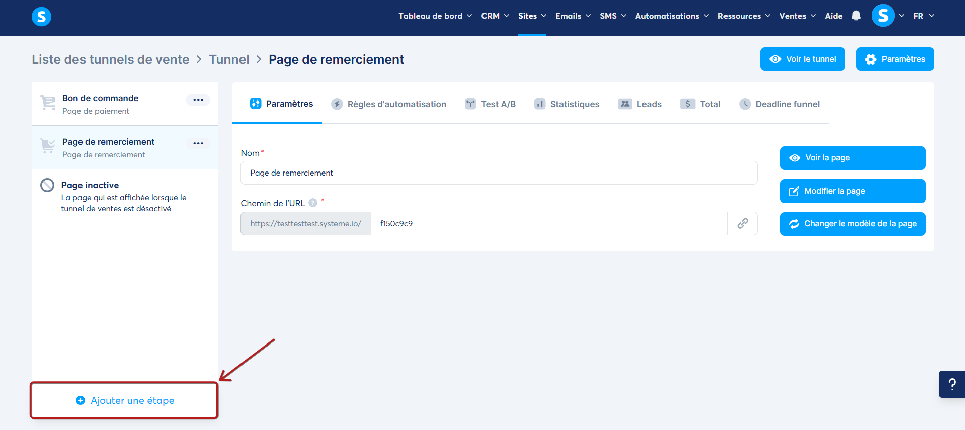Note : vous pouvez créer une nouvelle page sur votre tunnel de vente en cliquant sur "Ajouter une étape".