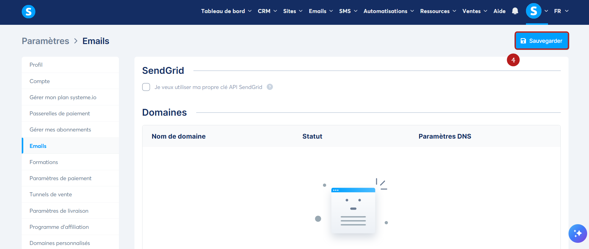 Sauvegardez les modifications en cliquant sur le bouton "Sauvegarder" situé en haut de la page (4).