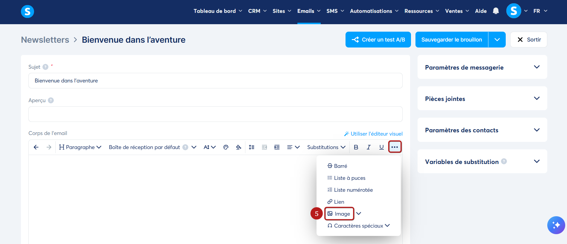 2. Ajout d'une image sur l'éditeur visuel des emails :