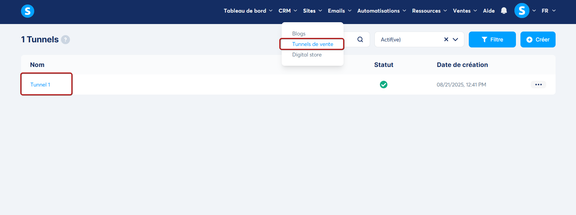- Un tunnel de vente déjà créé