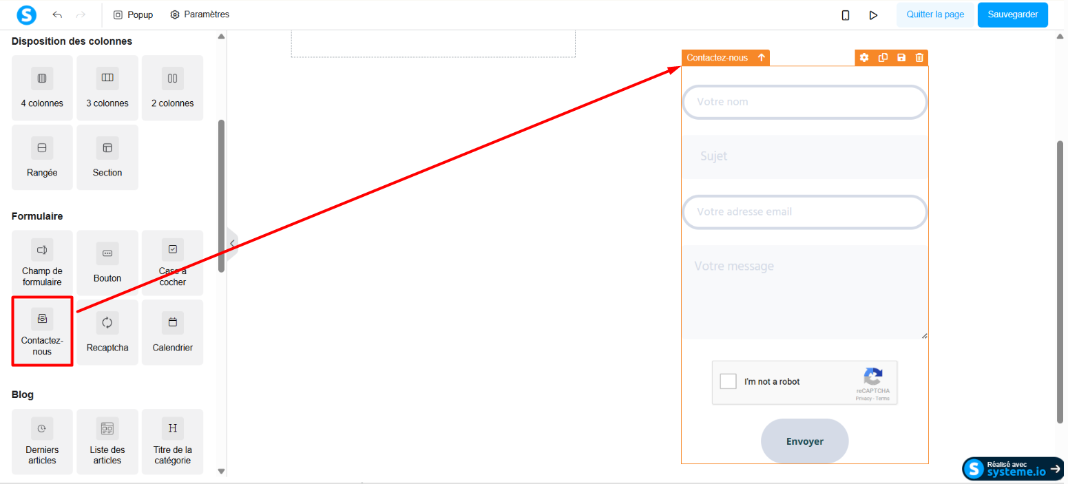 Entrez dans l'éditeur de la page du blog sur laquelle vous voulez ajouter le formulaire de contact.