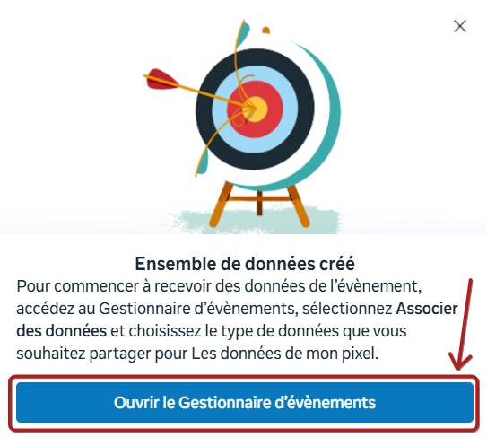 Une autre popup apparaîtra qui dira "Ensemble de données créé", cliquez ensuite sur "Ouvrir le Gestionnaire d'événement".