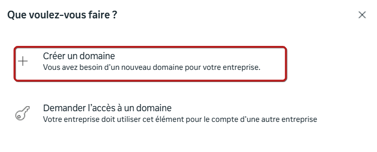 Une popup s’affiche avec deux options : choisissez "Créer un domaine".