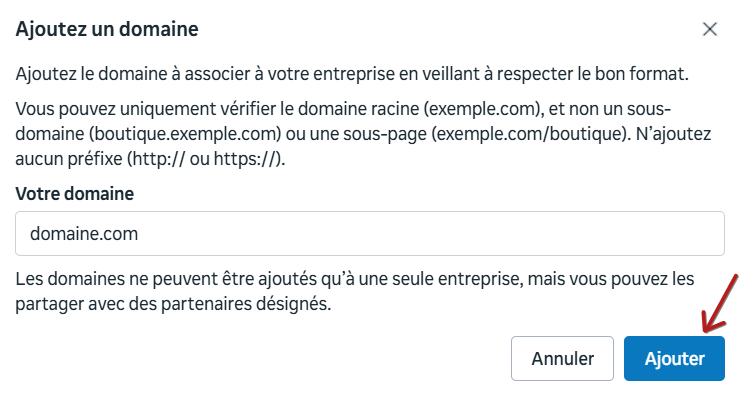 Entrez votre domaine et cliquez sur "Ajouter".