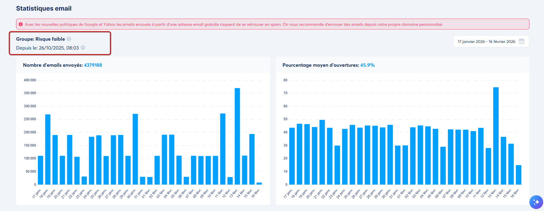 Pour assurer une bonne délivrabilité des emails, nous contrôlons quotidiennement l'activité de nos utilisateurs.