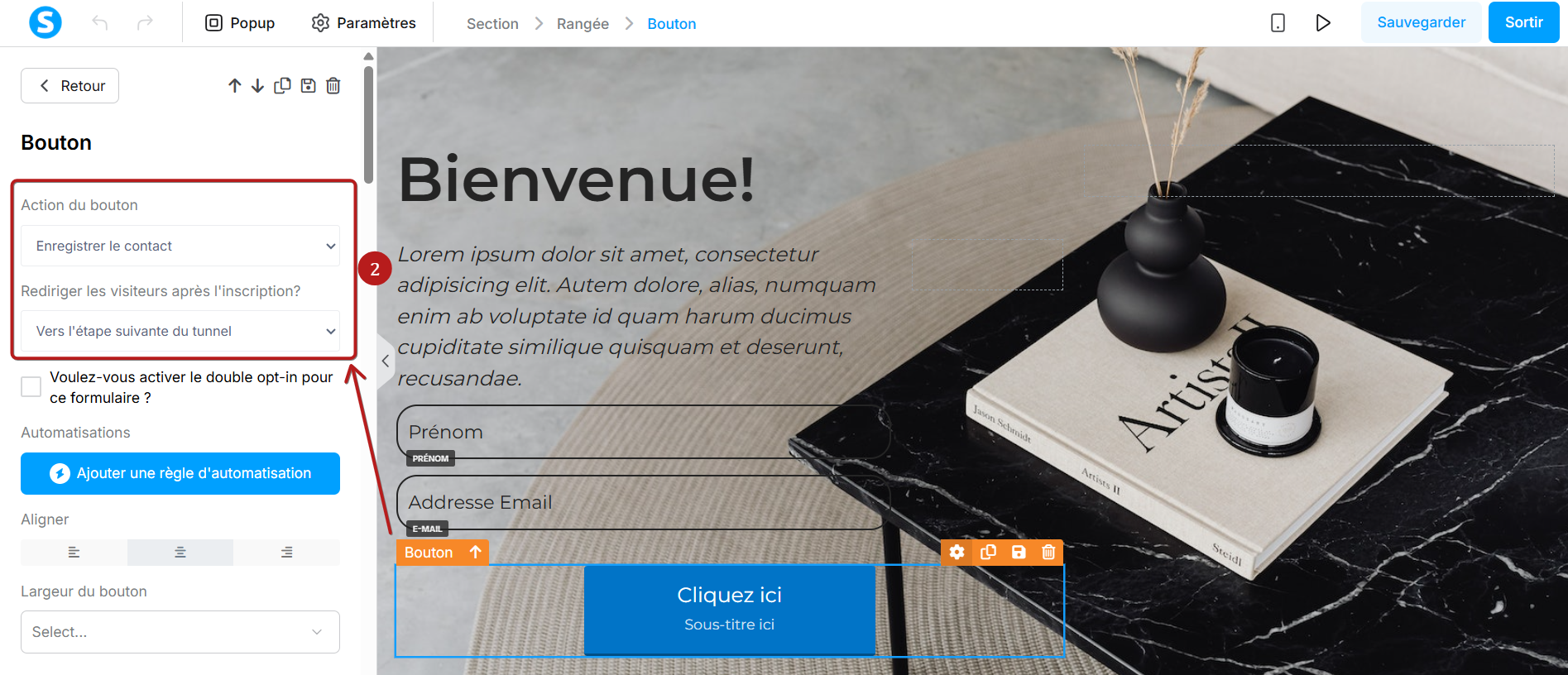 Pour pouvoir donner accès à une formation automatiquement après qu'un contact s'inscrit sur votre page de capture, vous devez mettre en place les instructions suivantes :