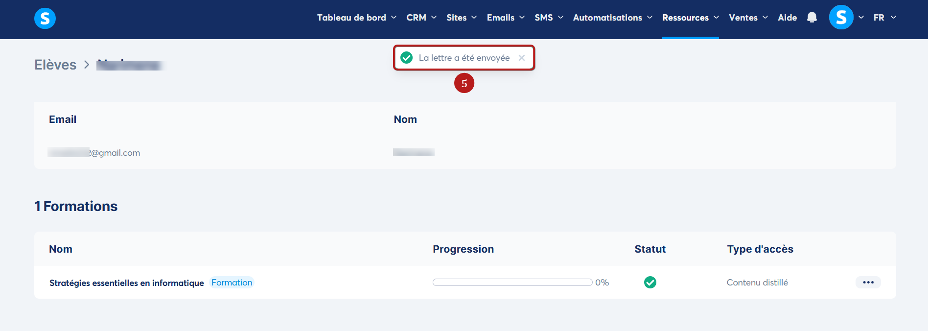 Cet article vous explique comment renvoyer manuellement l'email d'accès à une formation à un élève.