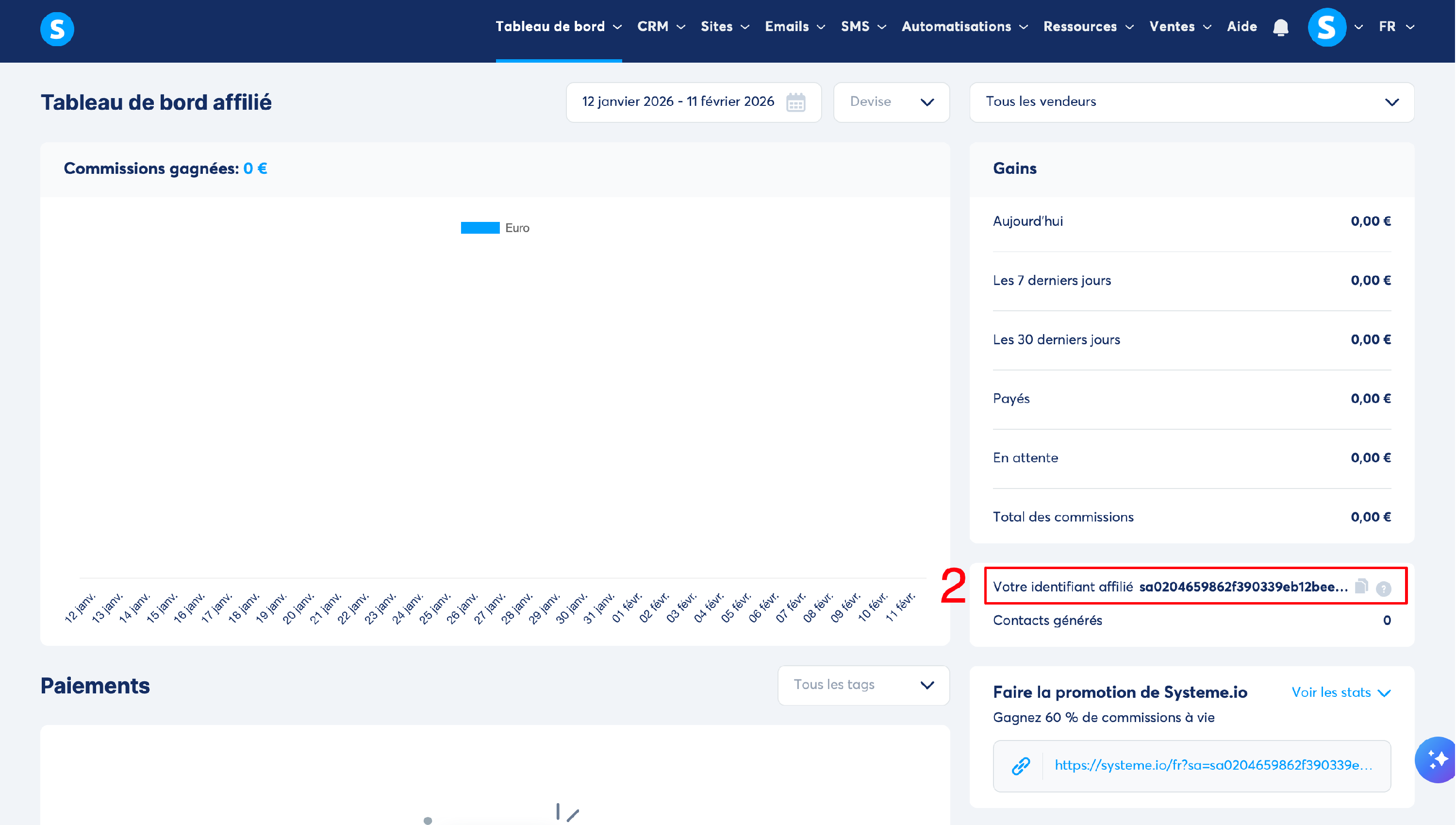 Pour en savoir davantage sur le fonctionnement du programme d'affiliation de systeme.io, cliquez ici.