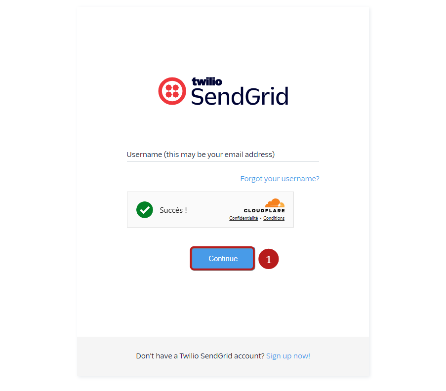 Connectez-vous à votre compte SendGrid en cliquant ici (1).