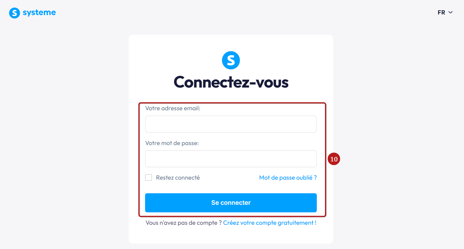 Connectez-vous à votre compte systeme.io en cliquant ici (10).