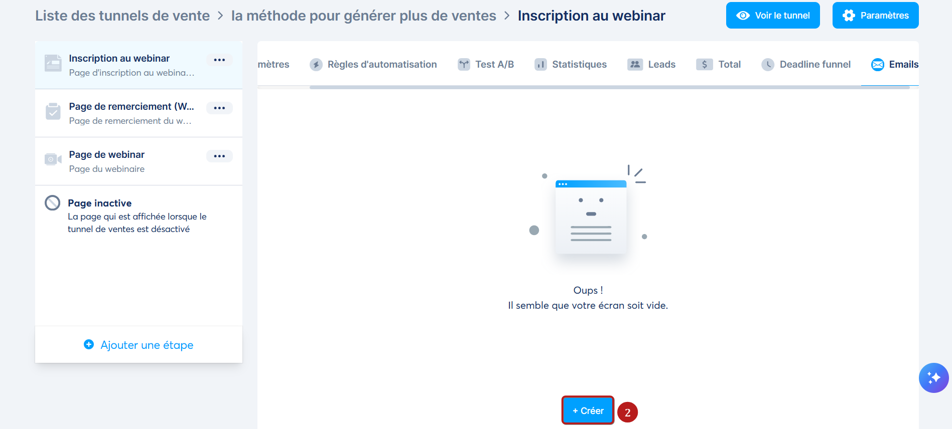 Cliquez sur "+ Créer" (2).