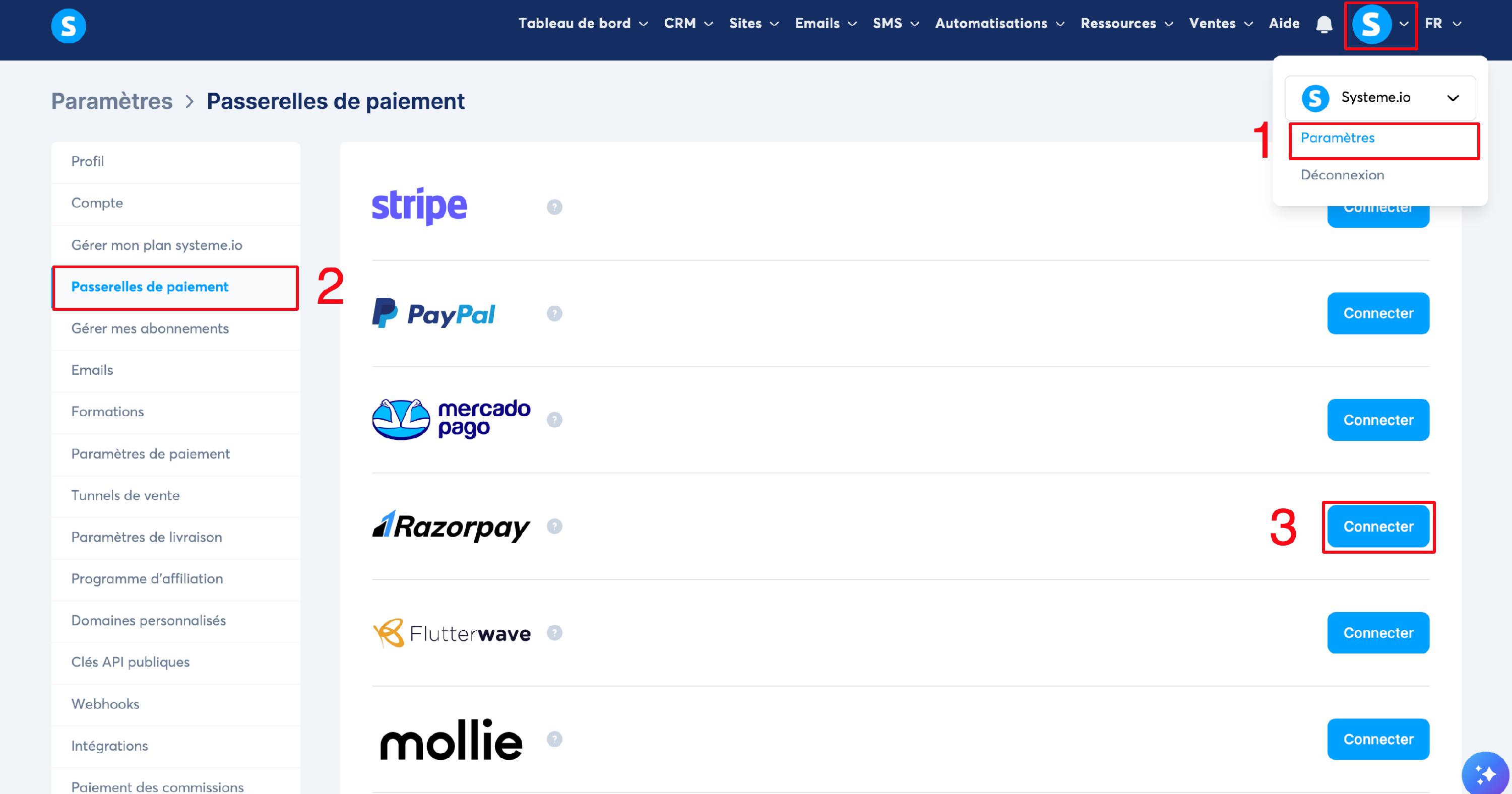 Dans cet article, vous allez apprendre à intégrer votre compte Razorpay à votre compte systeme.io.