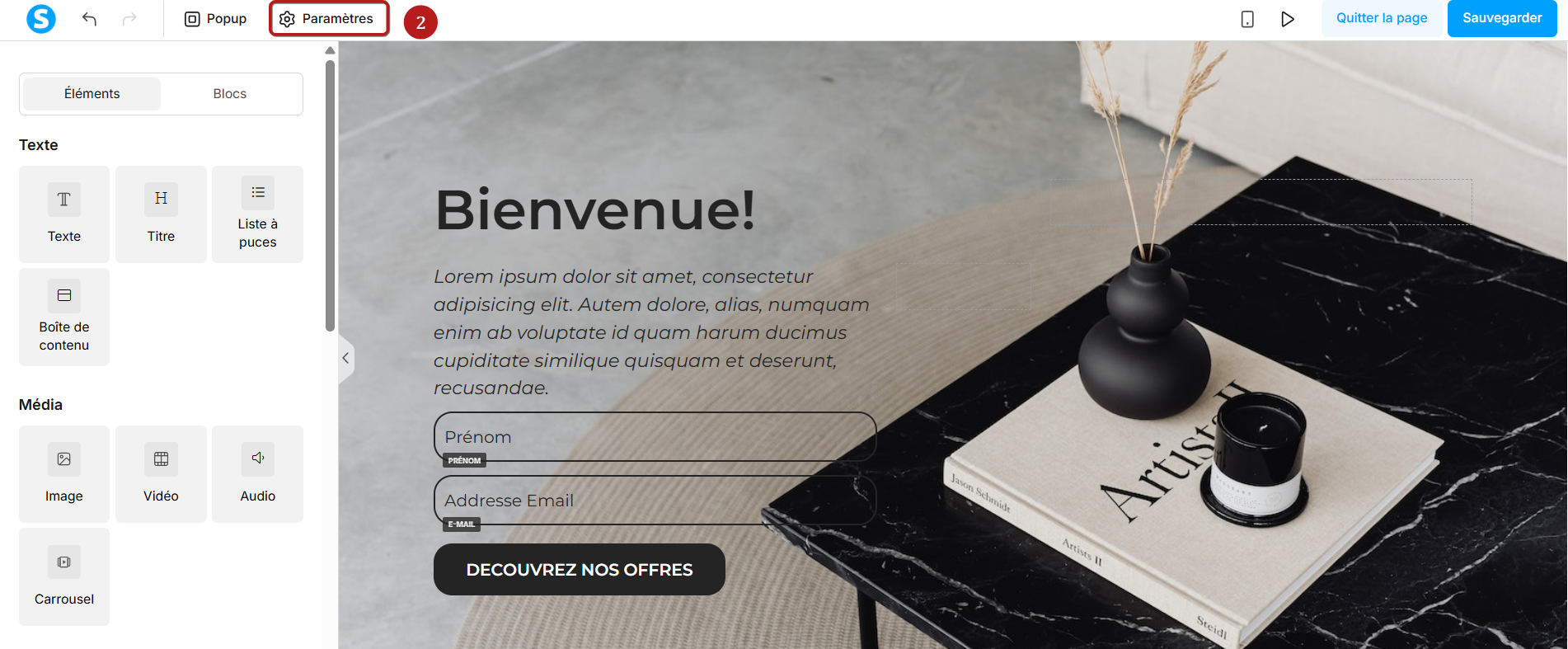 - une page créée sur systeme.io