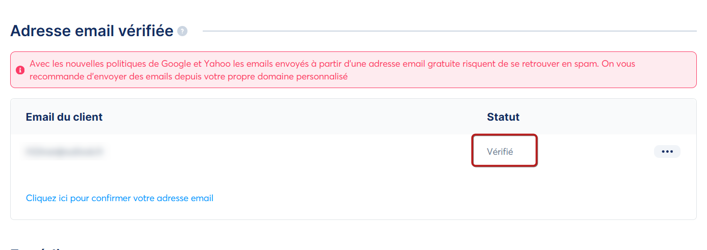 Une fois cette opération effectuée, le statut de votre adresse email passera à "Vérifié".