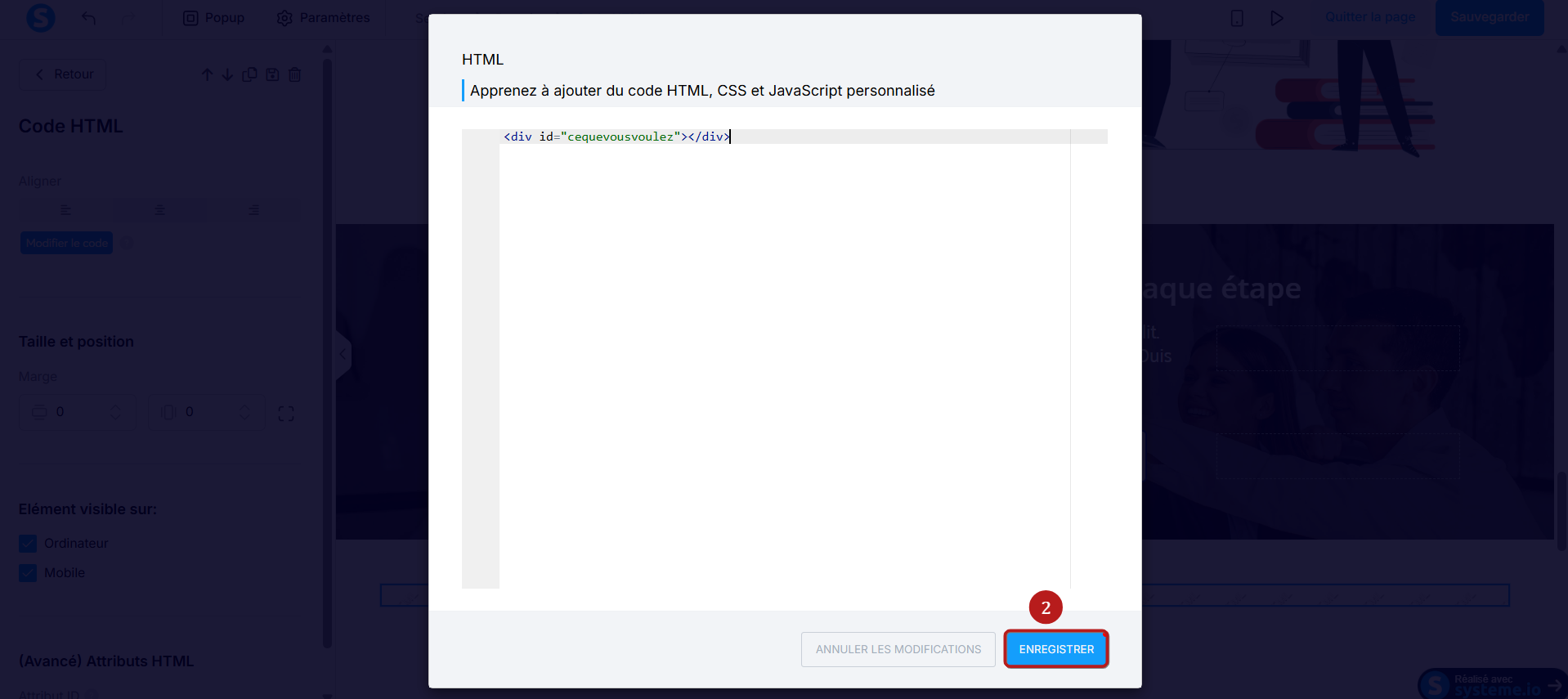 Après avoir introduit votre code, il vous suffit d'enregistrer (numéro 2 sur l'image)