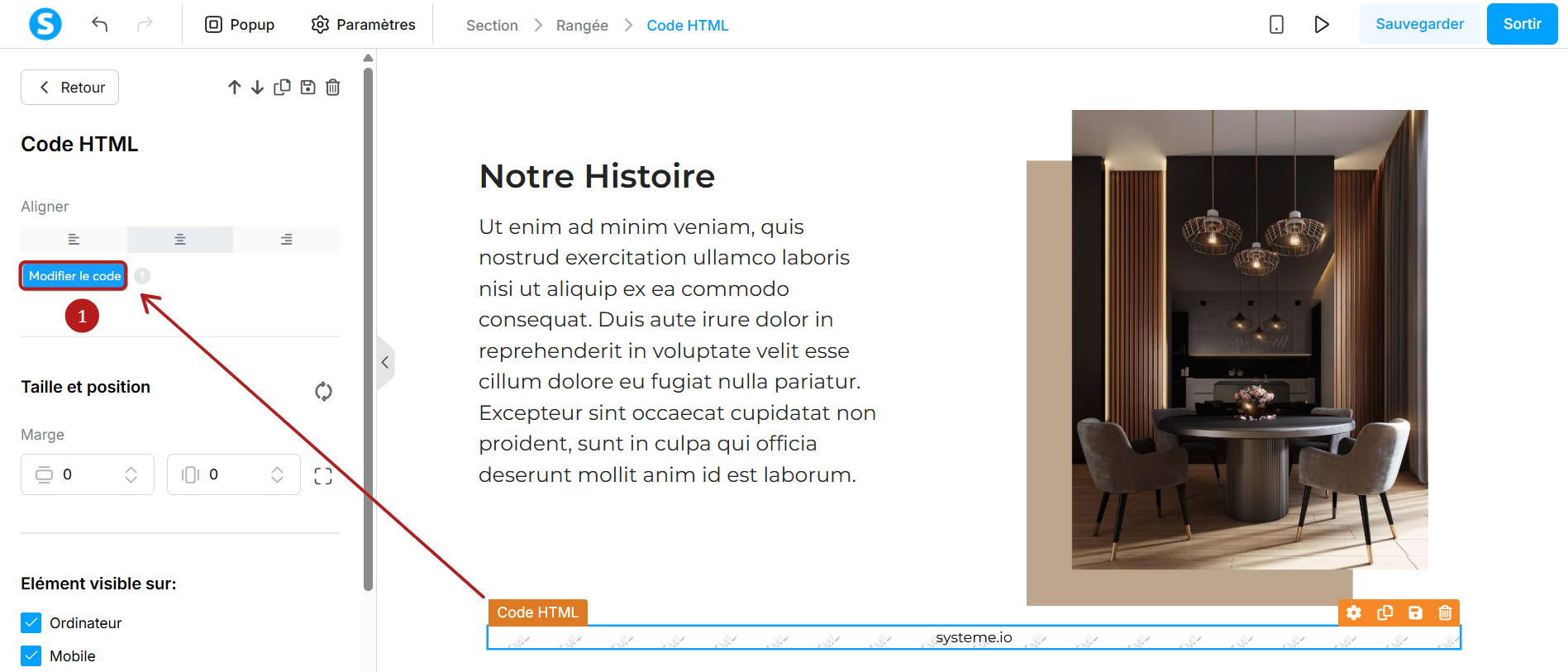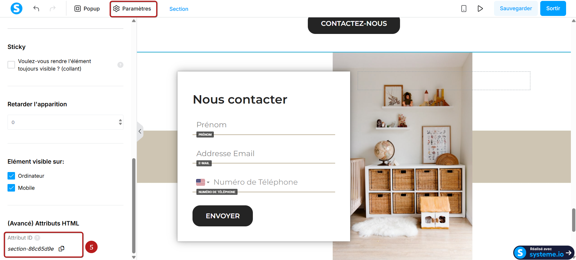 Il existe actuellement deux moyens pour mettre une ancre sur une page systeme.io
