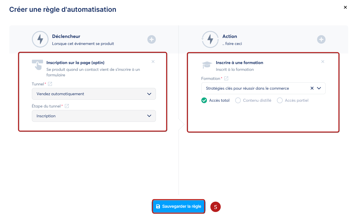 N'oubliez pas de sauvegarder la règle d'automatisation en cliquant sur "Sauvegarder la règle" (5).