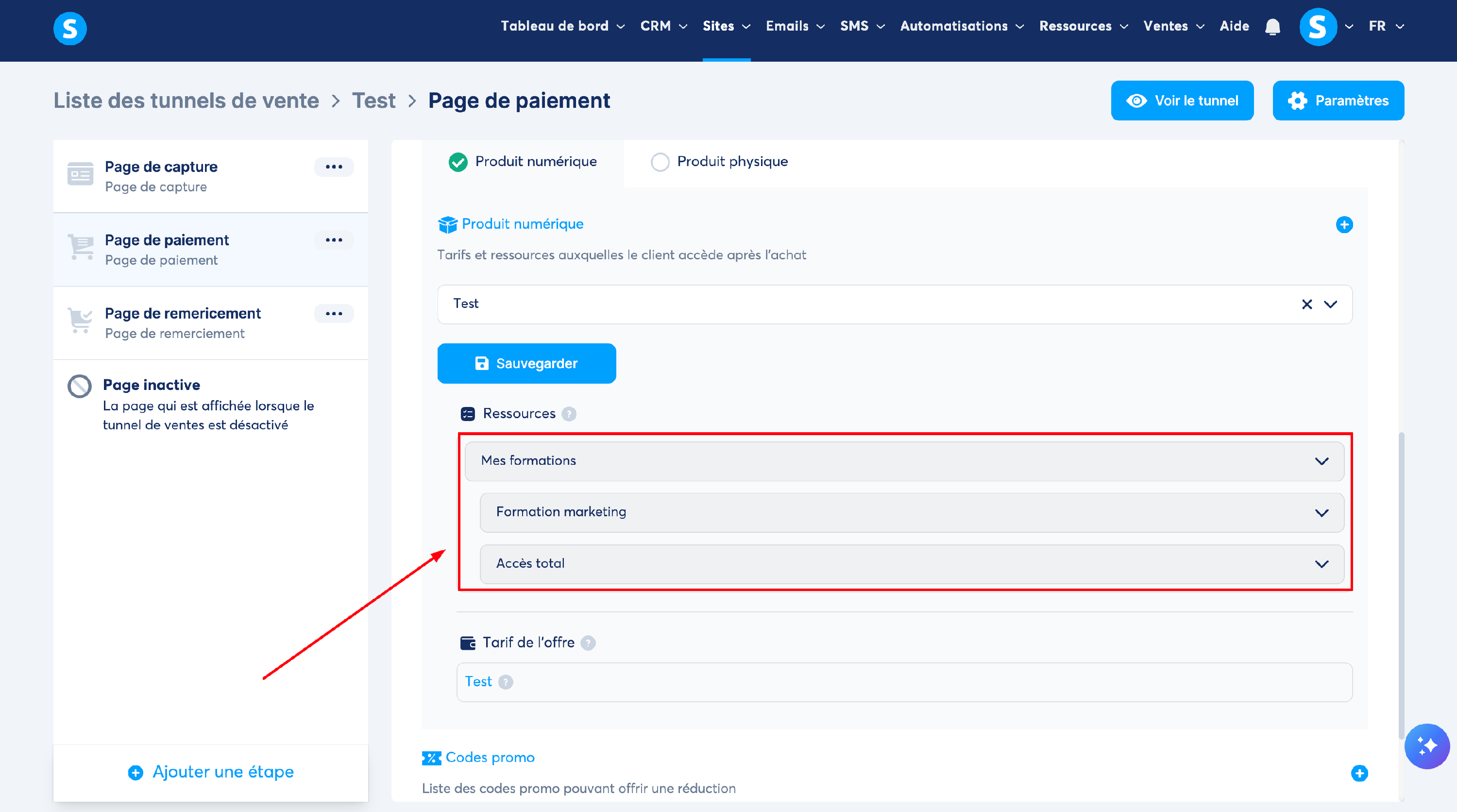 Si vous préférez que l'accès à la ressource se déclenche lors de la réception du premier paiement de l'abonnement, vous avez la possibilité de modifier ce paramètre dans les options des pages de paiement.