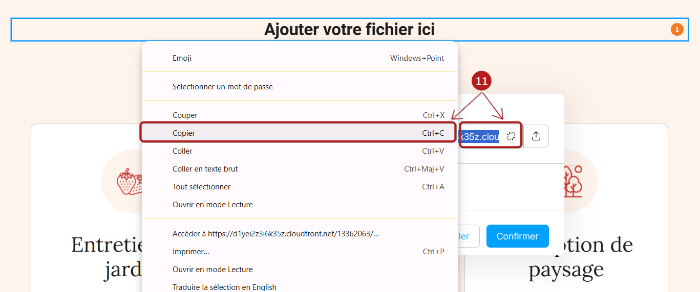 Une fois que vous aurez inséré le fichier, cliquez sur confirmer (8) pour sauvegarder. Il est recommandé de vérifier si votre lien fonctionne correctement par la suite.