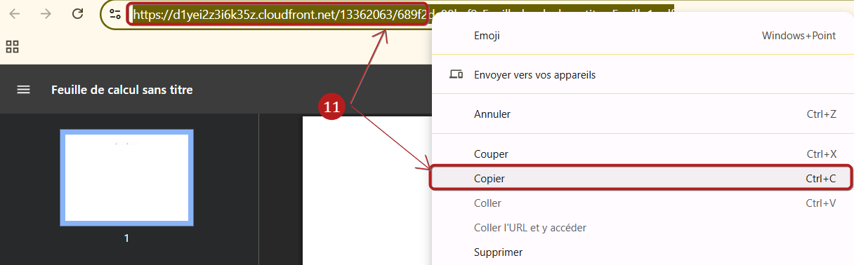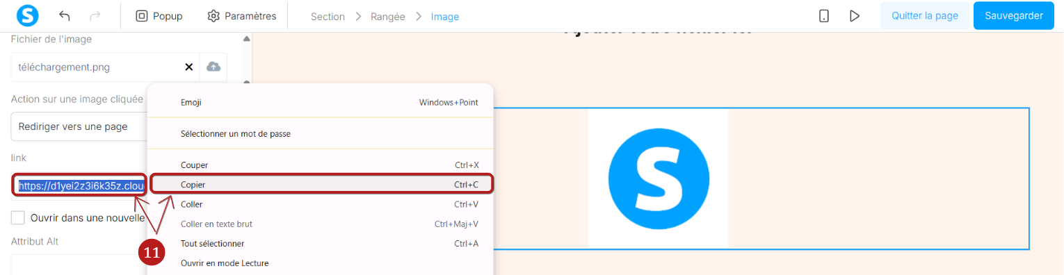 Il vous suffit à présent de copier l'URL qui se génère pour le fichier que vous avez hébergé sur systeme.io en faisant un clique droit avec votre souris pour le copier. (11)