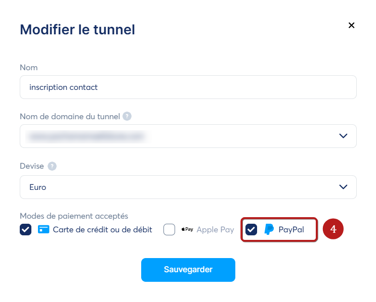 Cochez la case "PayPal" (4).