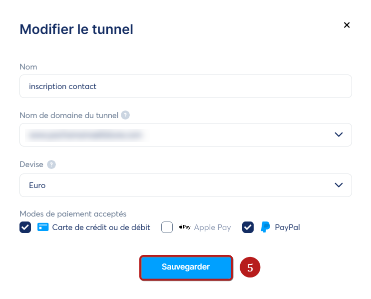Enfin, validez vos modifications en cliquant sur "Sauvegarder" (5).