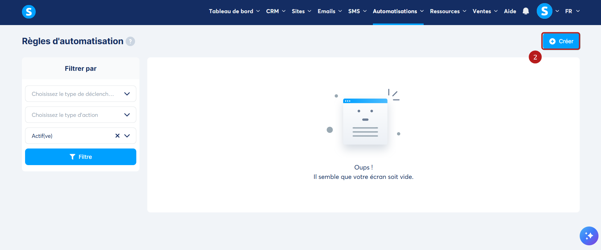 Cliquez sur "Créer" pour ajouter ur une nouvelle règle d'automatisation (2).