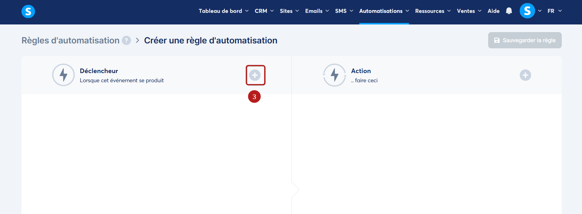 Cliquez sur le bouton " + " à côté du déclencheur pour choisir un déclencheur (3).