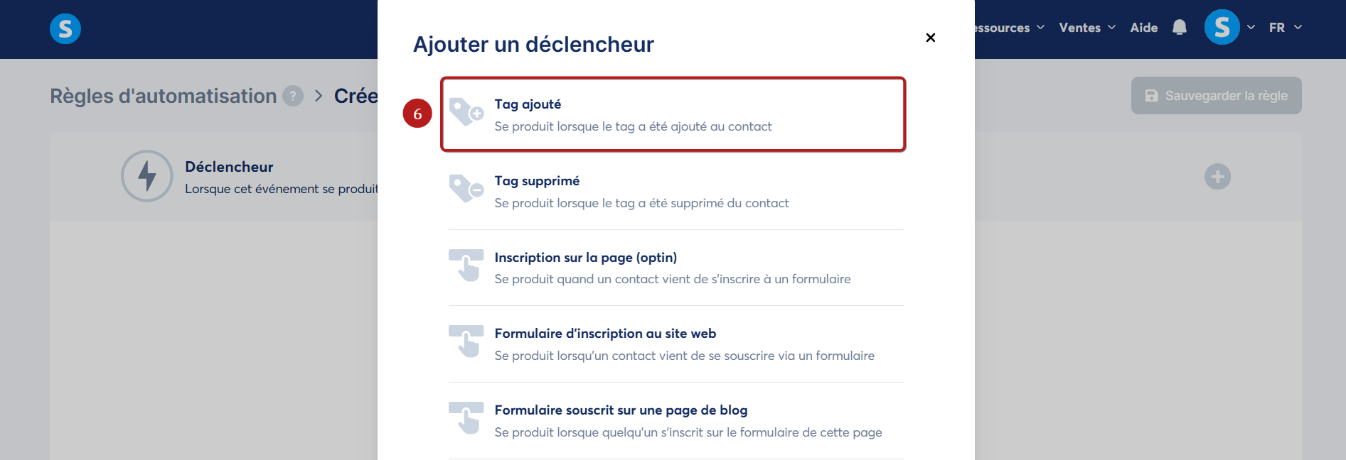 Note : il faut que le tag soit ajouté aux contacts après la mise en place de la règle.