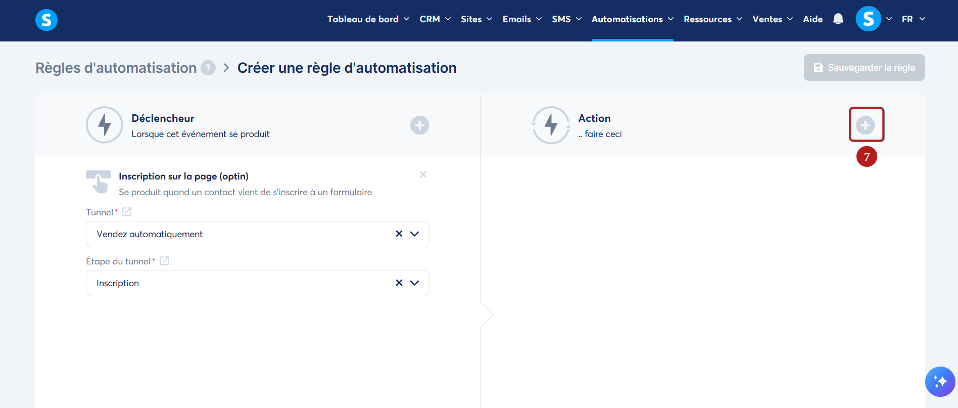 Cliquez sur le bouton " + " à côté de "Action" (7).