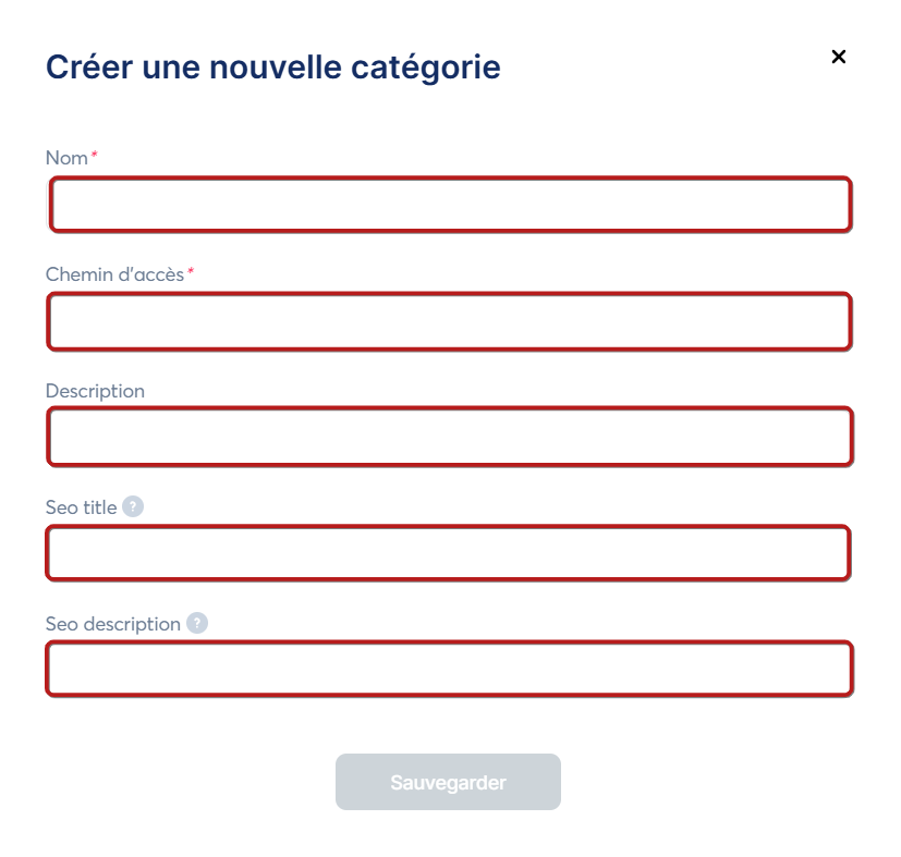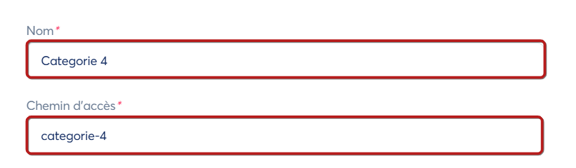 Informations sur les champs requis lors de la création d'une catégorie de blog