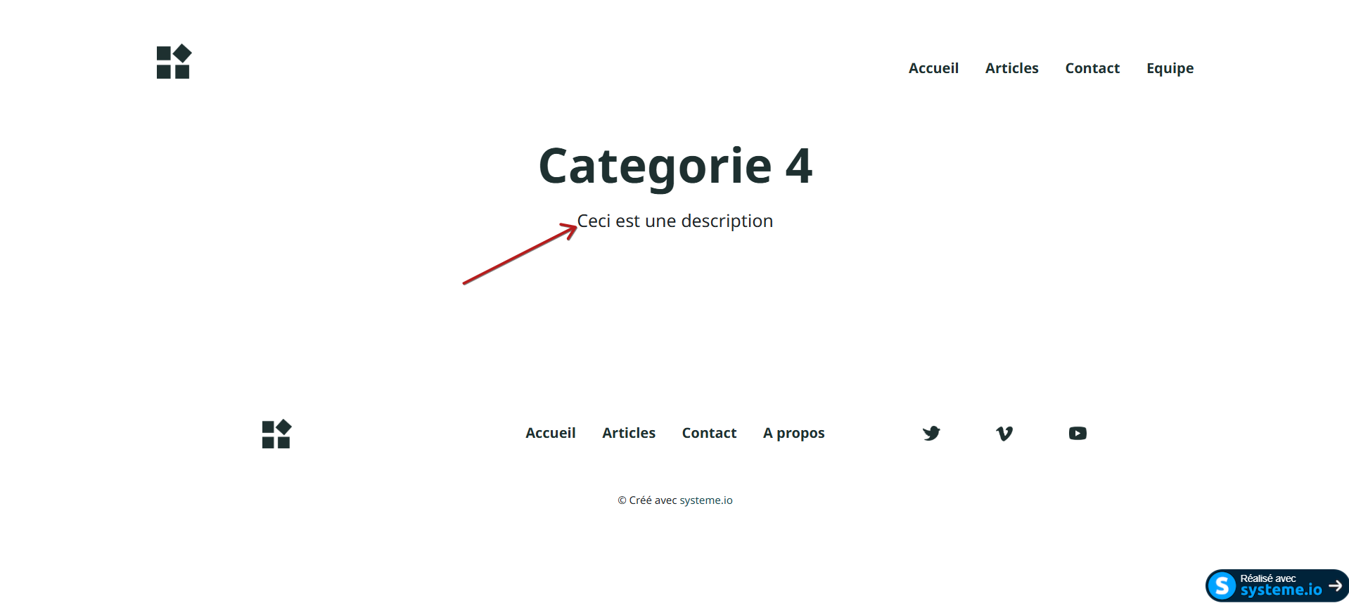 3. Description : vous devez ajouter un nom à votre catégorie qui sera automatiquement affiché sur la page de la catégorie, exemple : Ceci est une description.