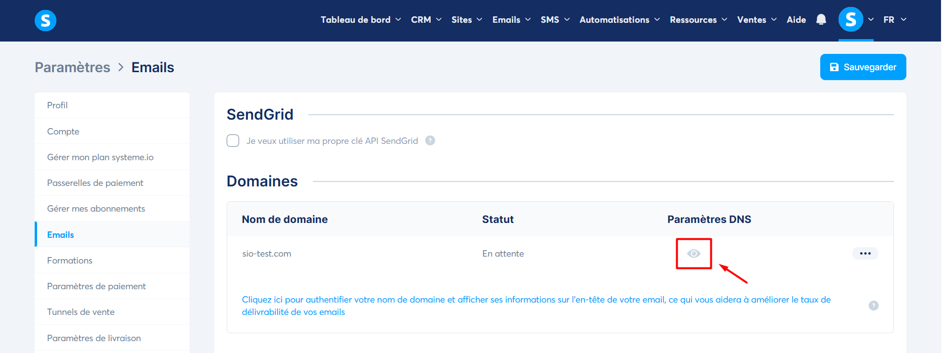 - L'authentification d'un nom de domaine est obligatoire pour pouvoir envoyer des emails à partir de systeme.io.