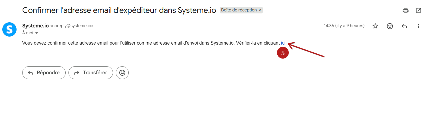Vous recevrez un email contenant un lien de confirmation dans la boîte de réception de l'adresse que vous souhaitez valider (5).
