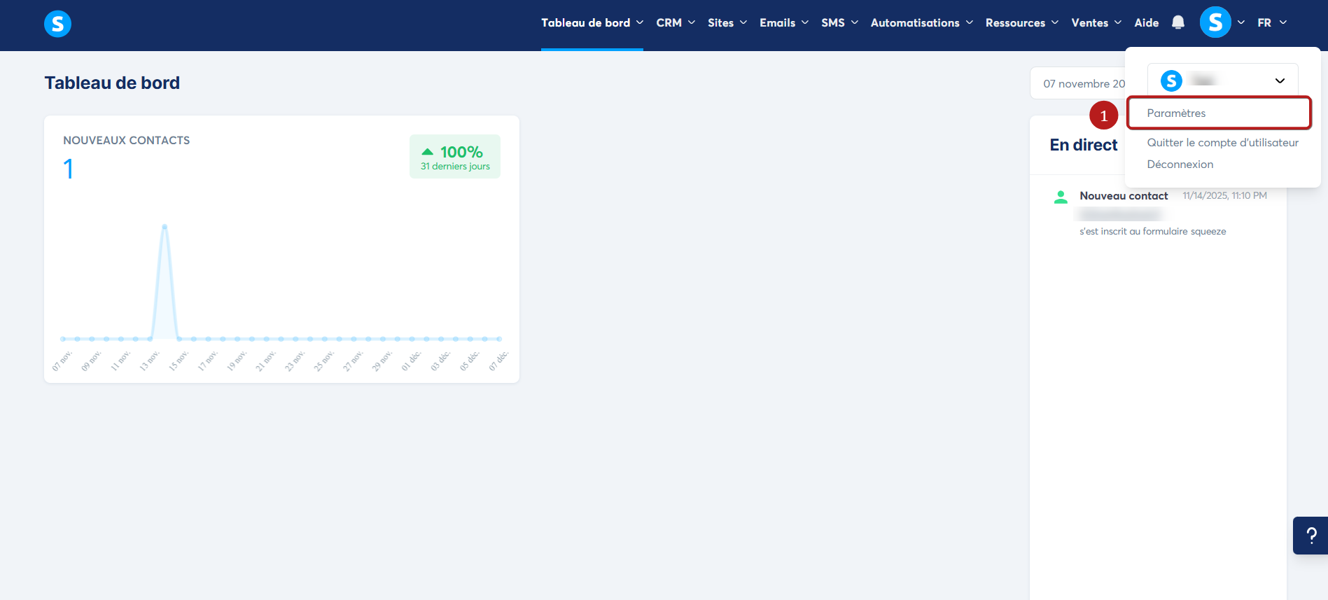 Tout d'abord, cliquez sur votre photo de profil, puis cliquez sur "Paramètres" (1).