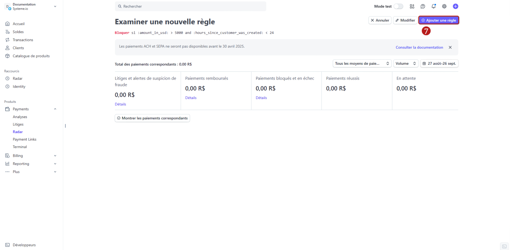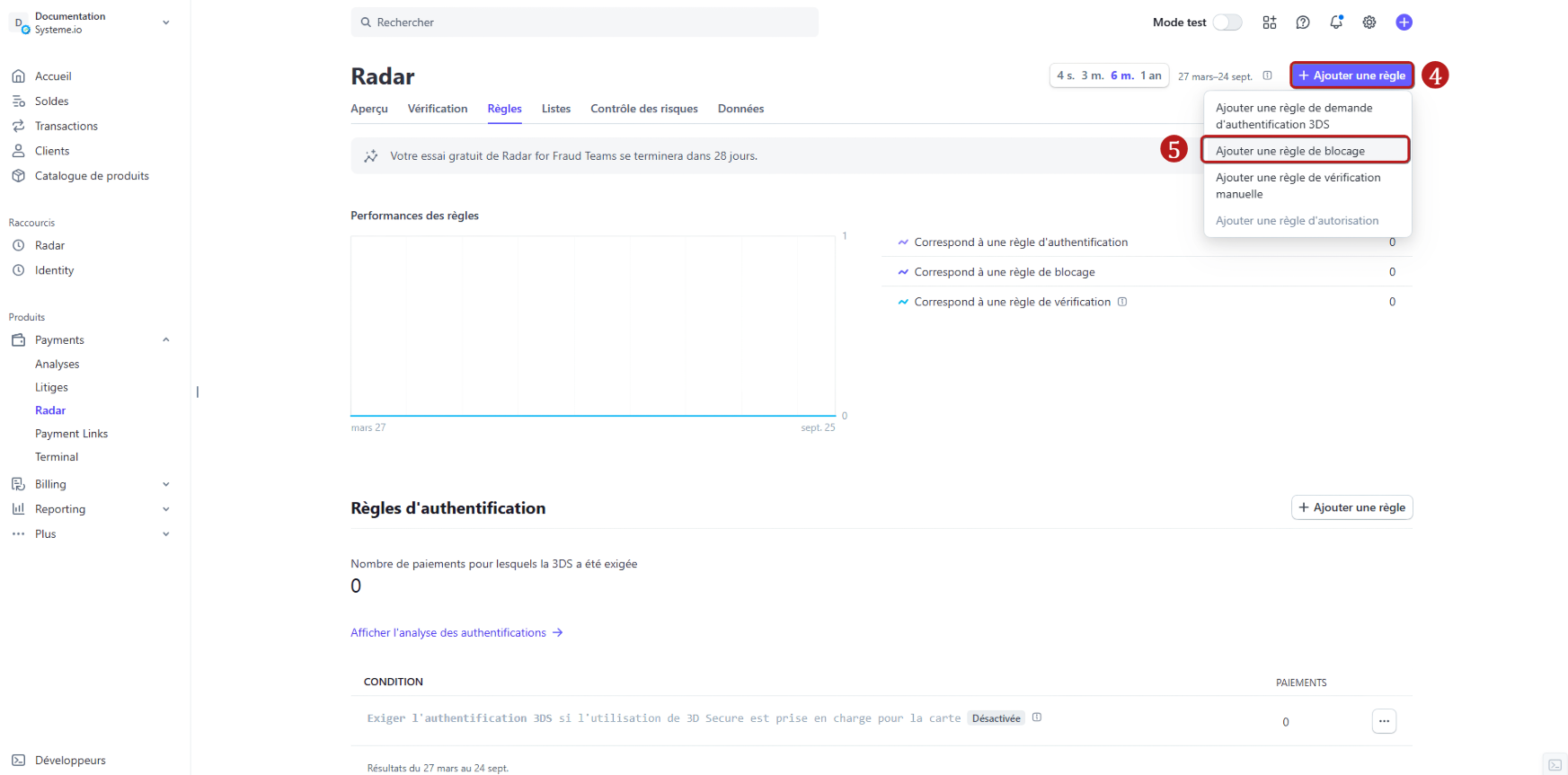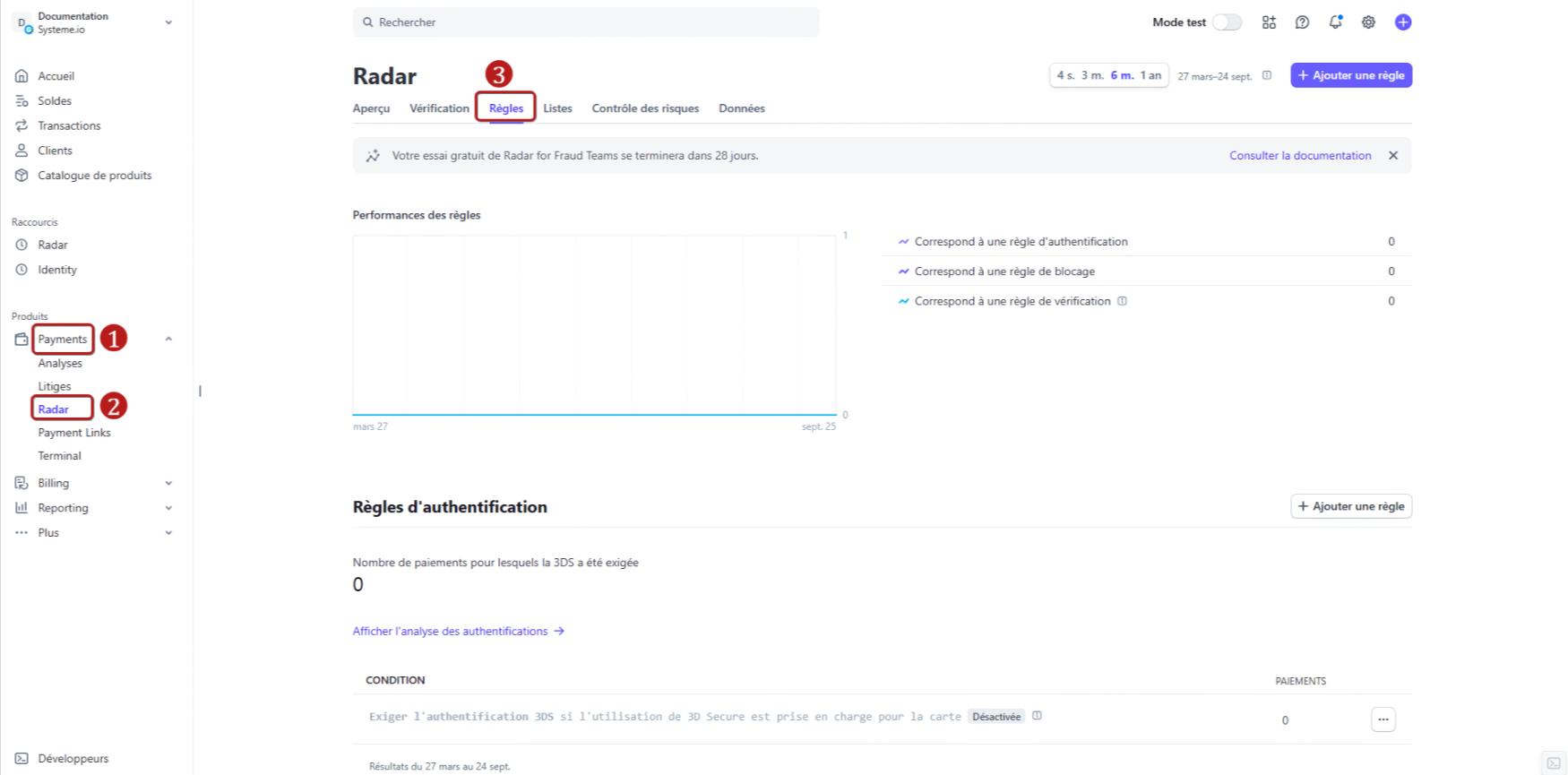 - Systeme.io ne peut pas configurer les règles Radar à votre place.