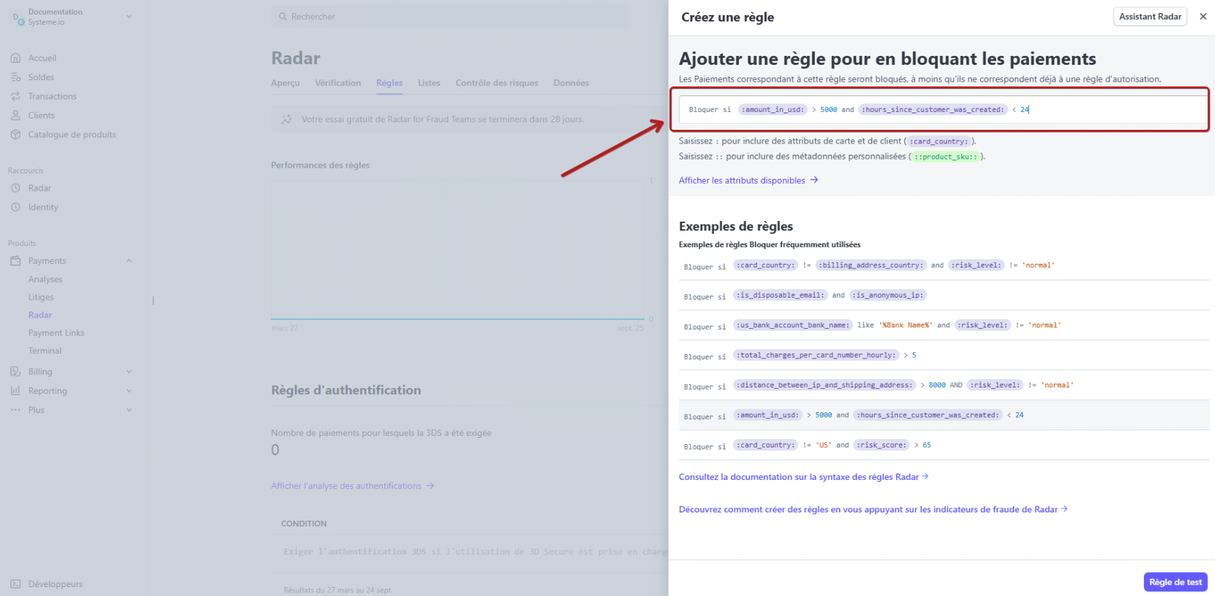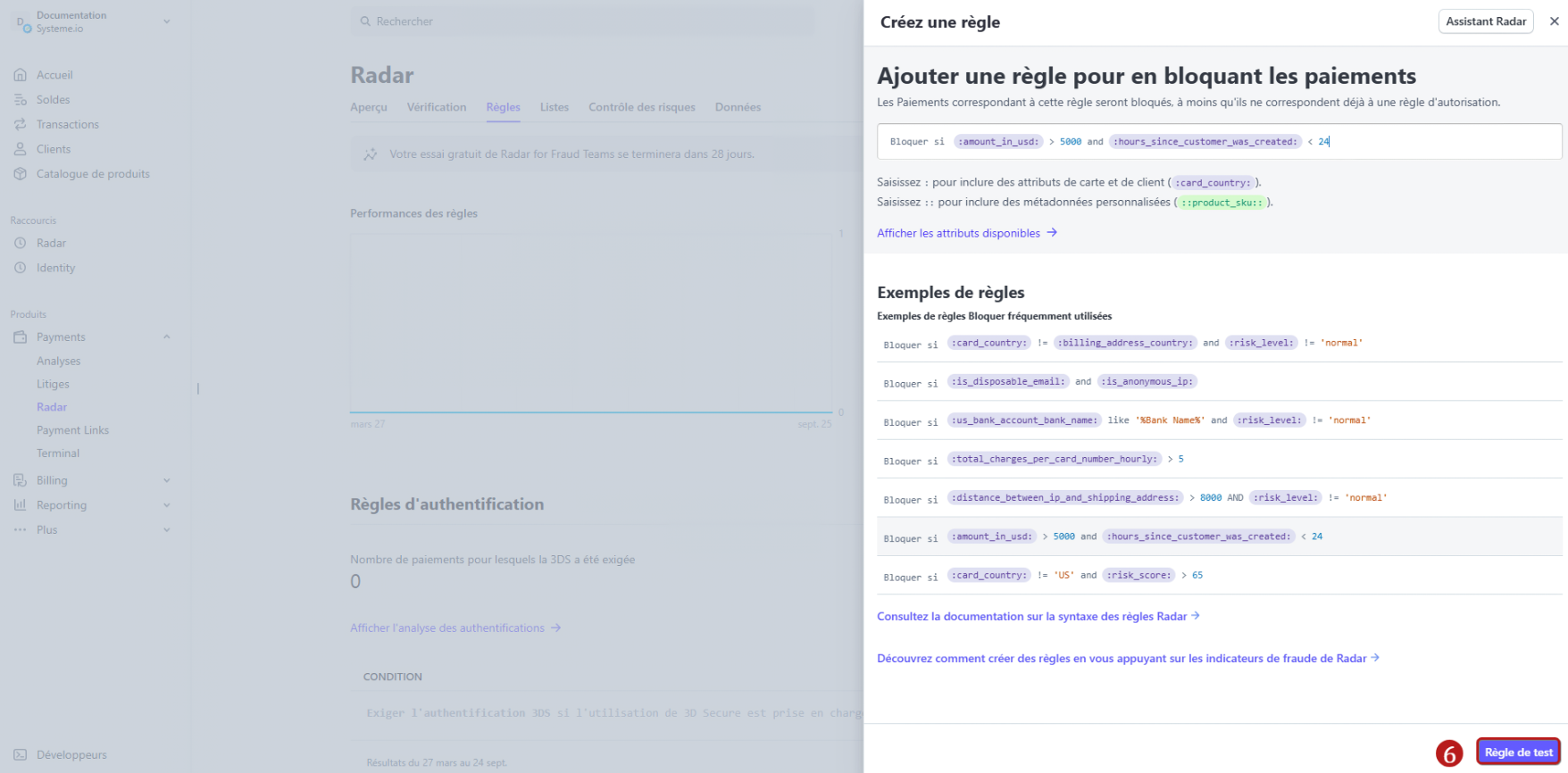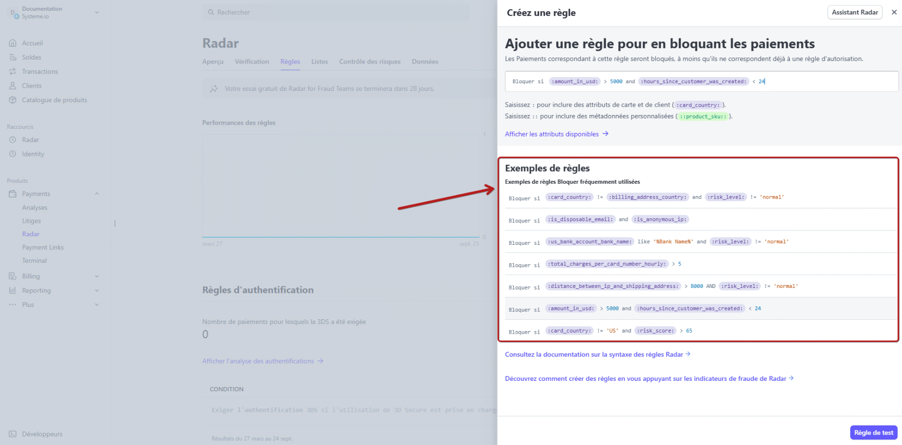 Pour en savoir plus sur les règles Radar, consultez le guide complet de Stripe.