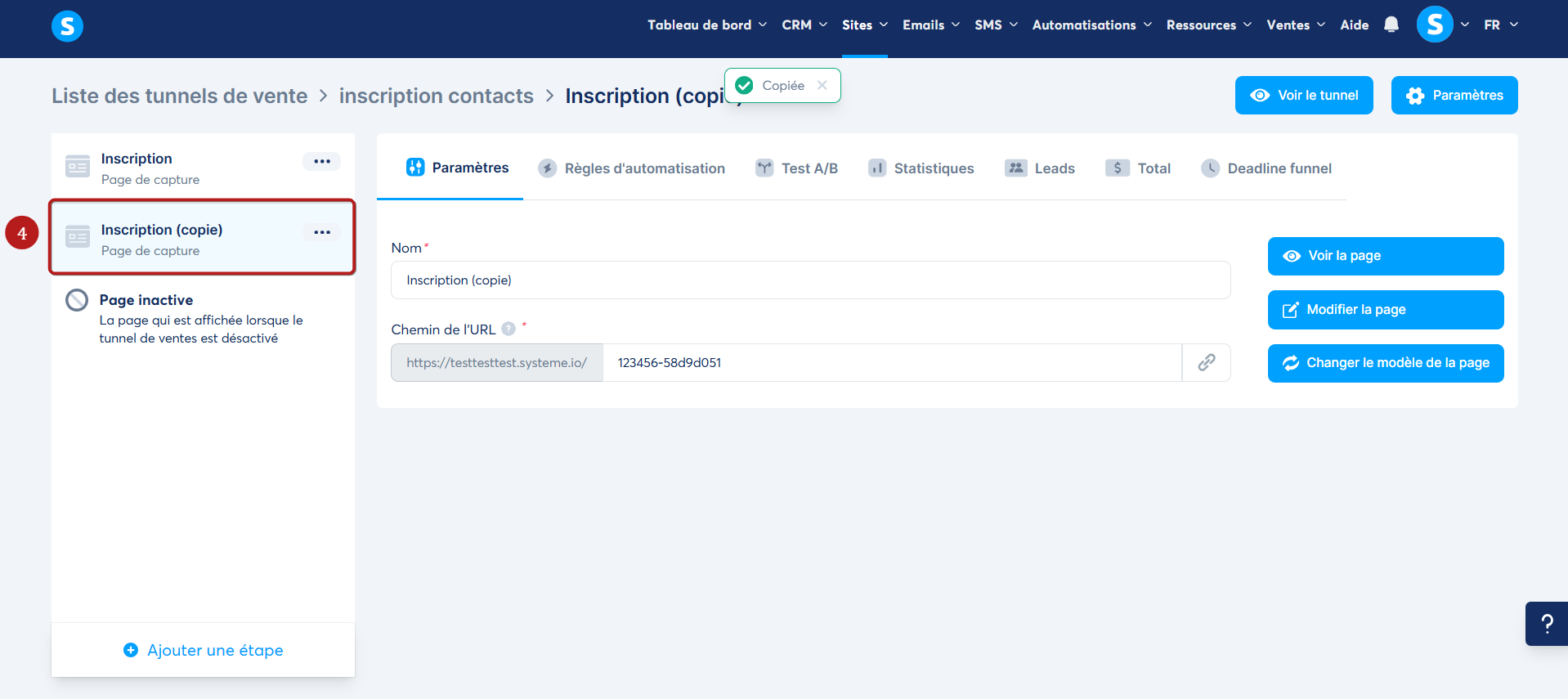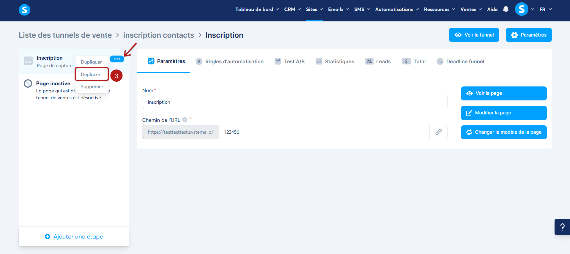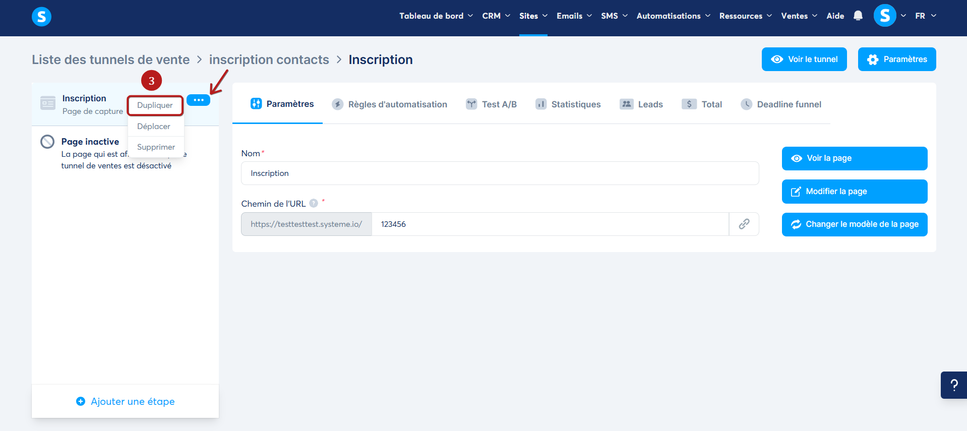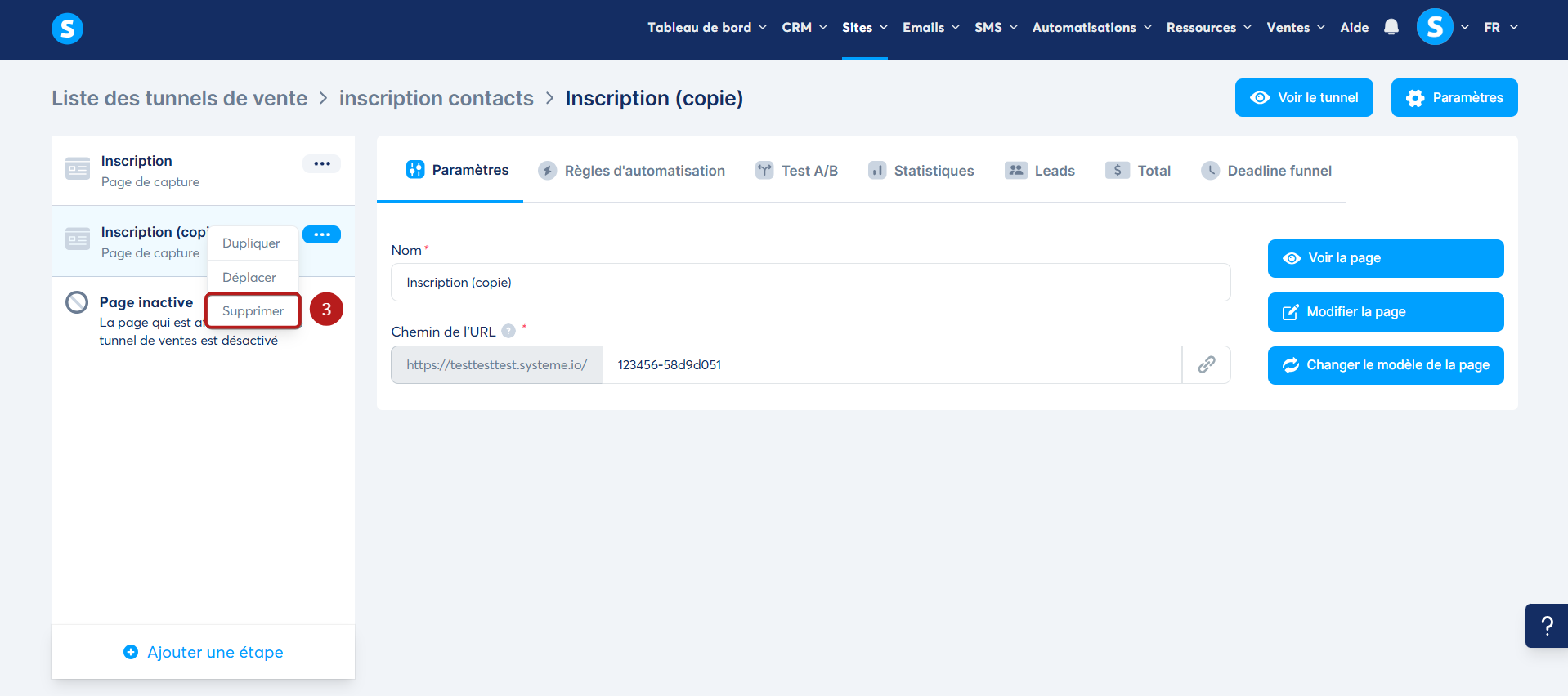 Comment déplacer, dupliquer & supprimer une page d'un tunnel de vente