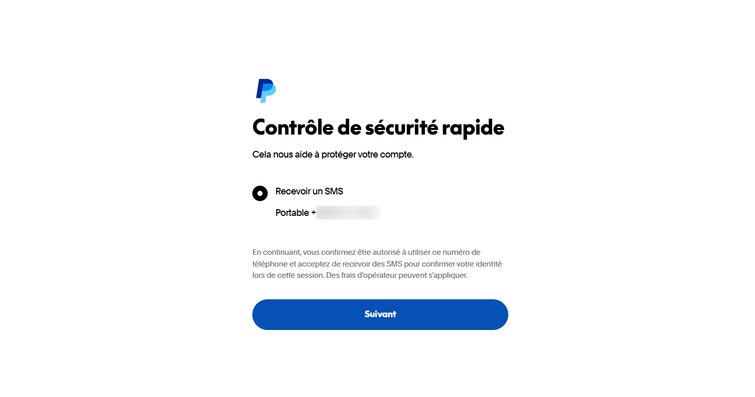 Si l'authentification à deux facteurs (2FA) est activée sur votre compte PayPal, vous serez invité à vérifier votre identité en saisissant un code de sécurité envoyé sur votre téléphone ou par email