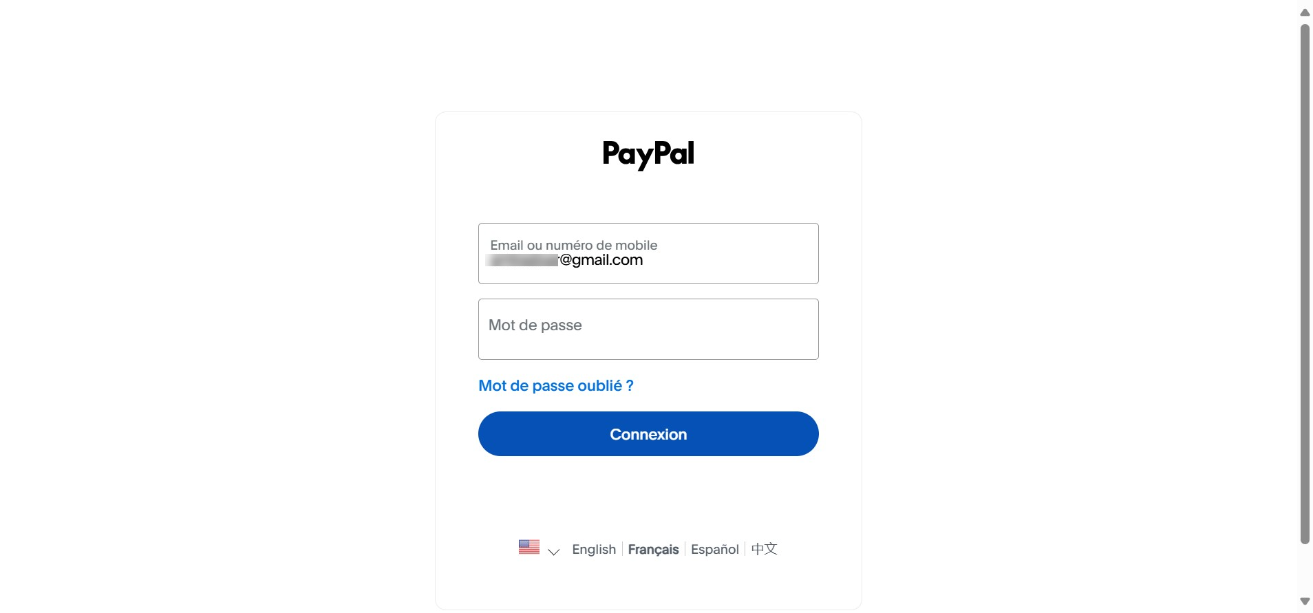 Après avoir cliqué sur « Connecter », un nouvel onglet va s'ouvrir et vous demander de vous connecter à PayPal. Entrez l'adresse email et le mot de passe de votre compte PayPal