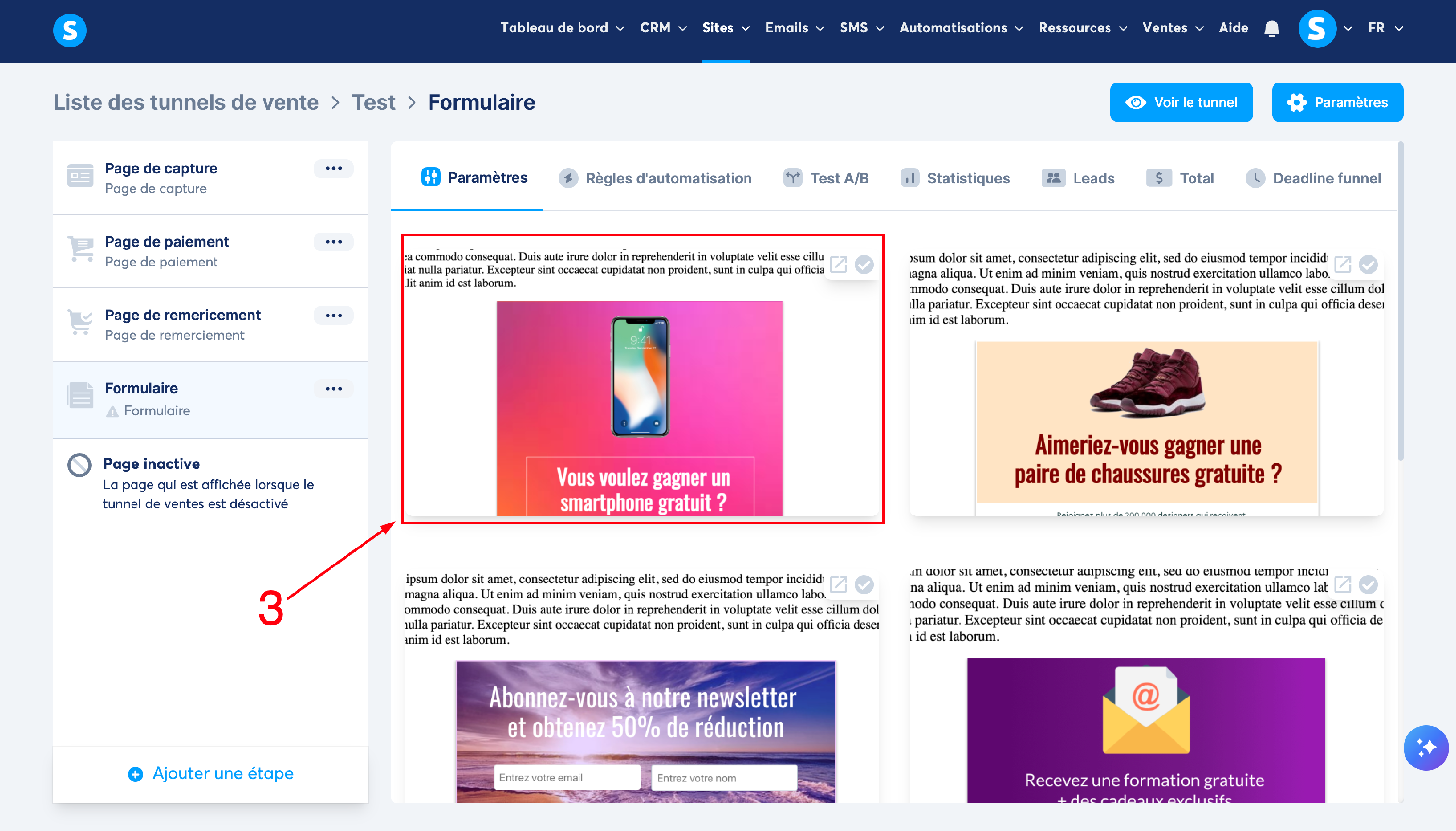 Choisissez un des templates qui vous convient en cliquant sur le template (numéro 3 sur l'image)