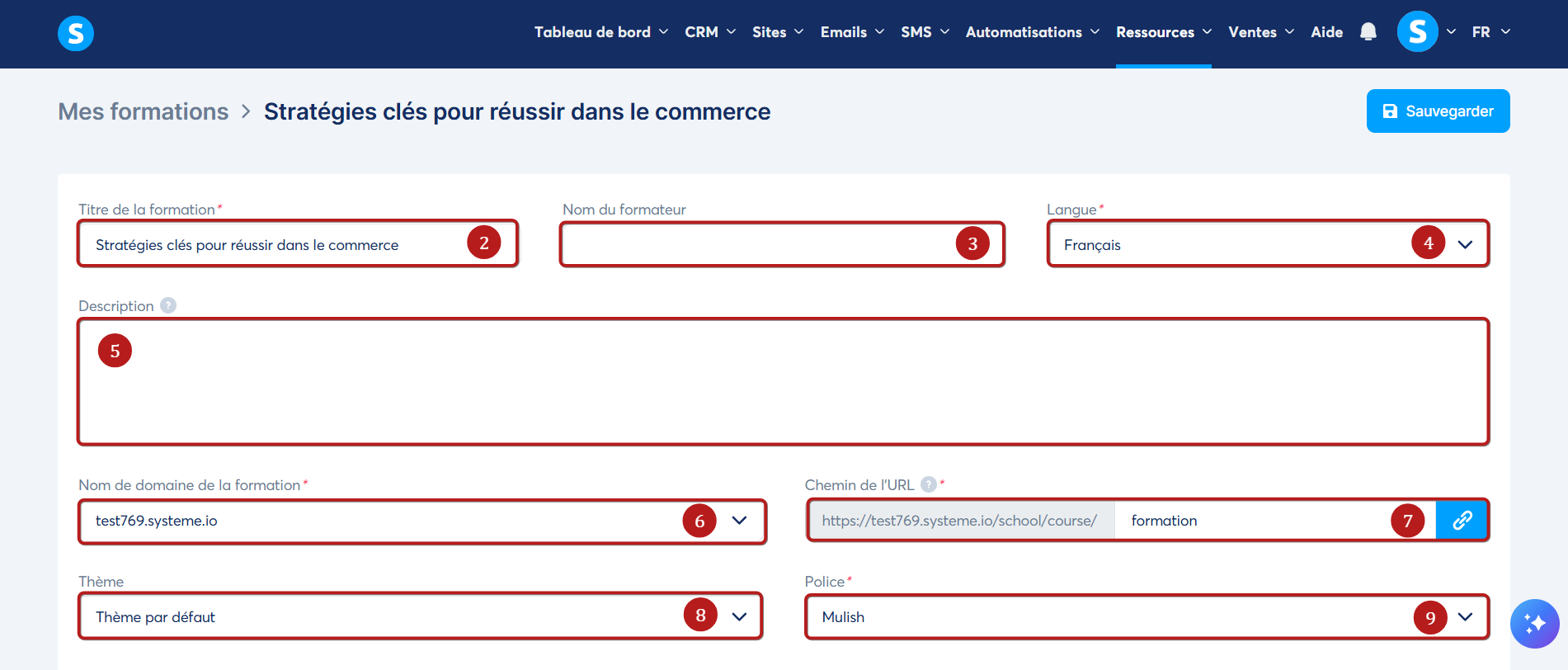 - Changer le nom de domaine de votre formation (6).