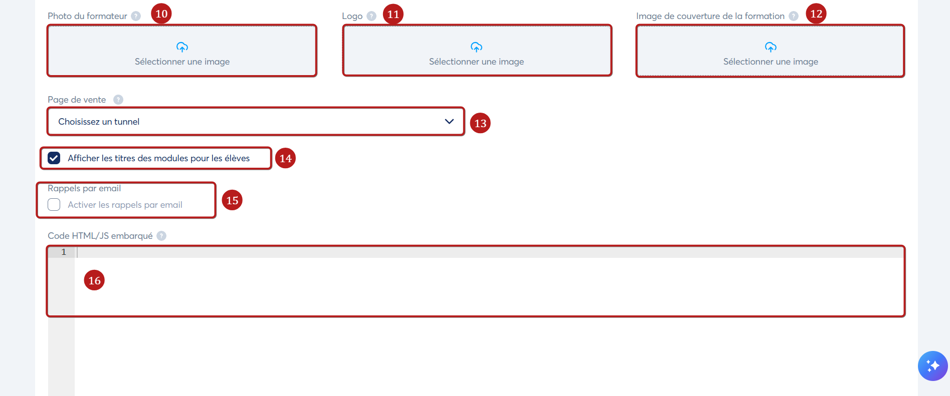 - Sélectionner une page de vente pour votre formation (13).