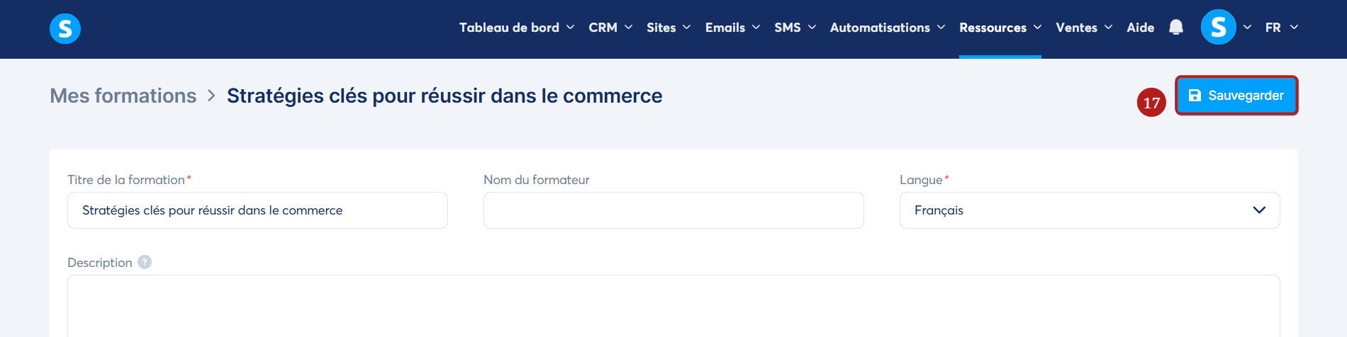 Cliquez sur "Sauvegarder" en haut de la même page pour enregistrer vos modifications (17).