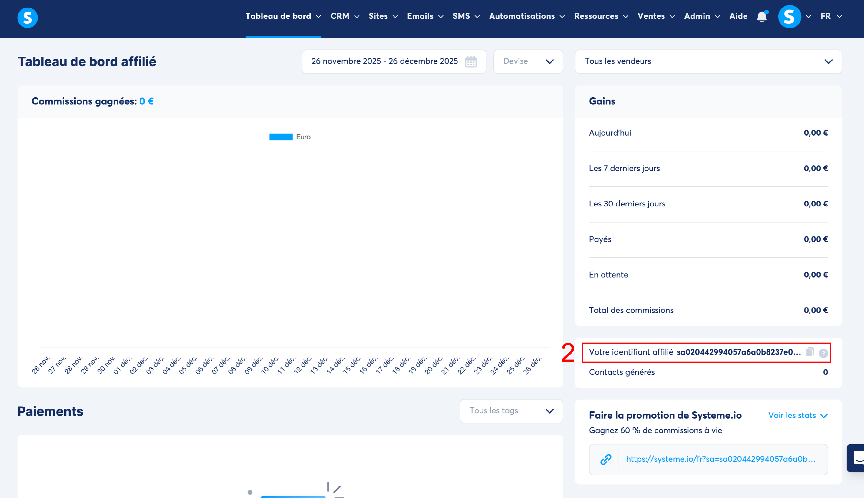 (Votre ID d'affilié sera affiché ici : https://systeme.io/dashboard/affiliate-dashboard)