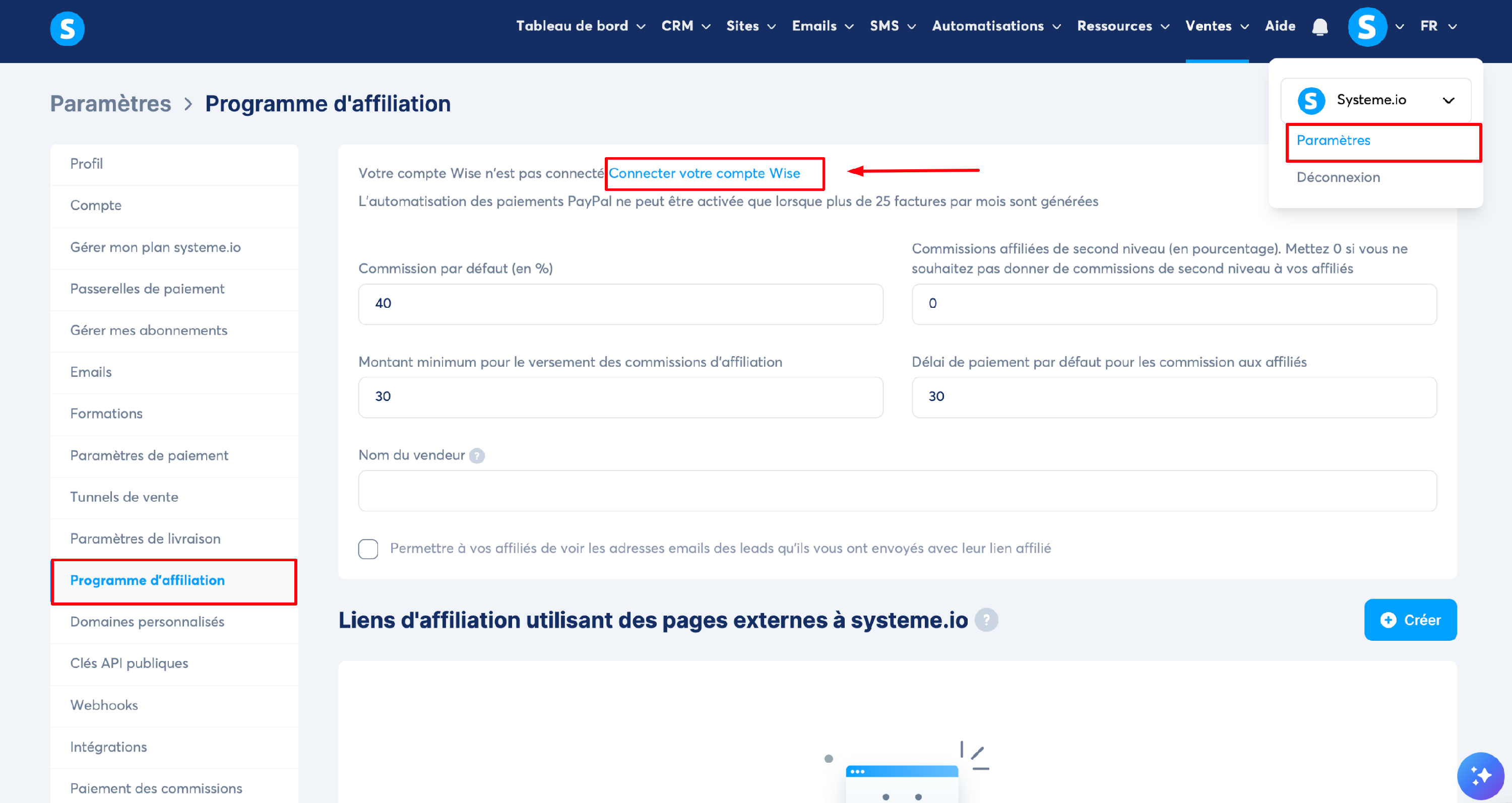 Dans cet article, vous allez voir comment connecter votre compte Wise à systeme.io, afin d'automatiser vos paiements à vos affiliés.