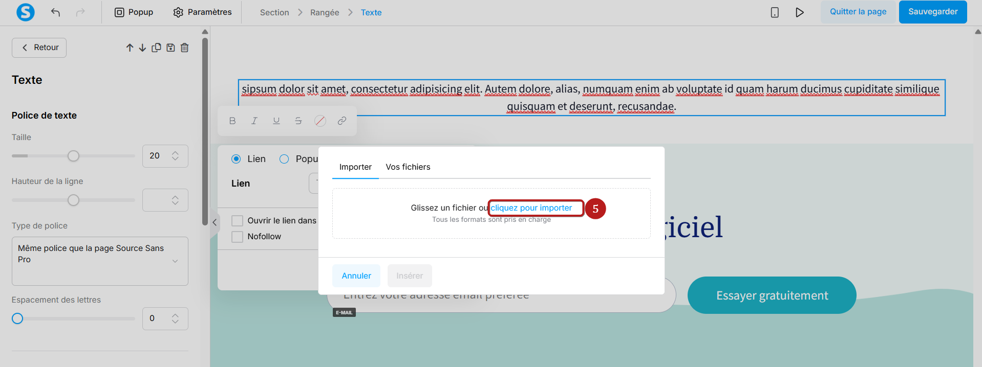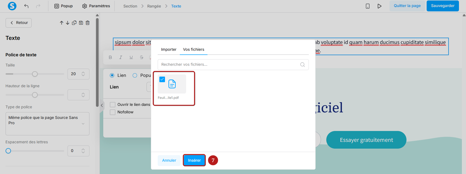 Une fois le fichier choisi, cliquez sur "Insérer" pour l'ajouter à votre texte (7).