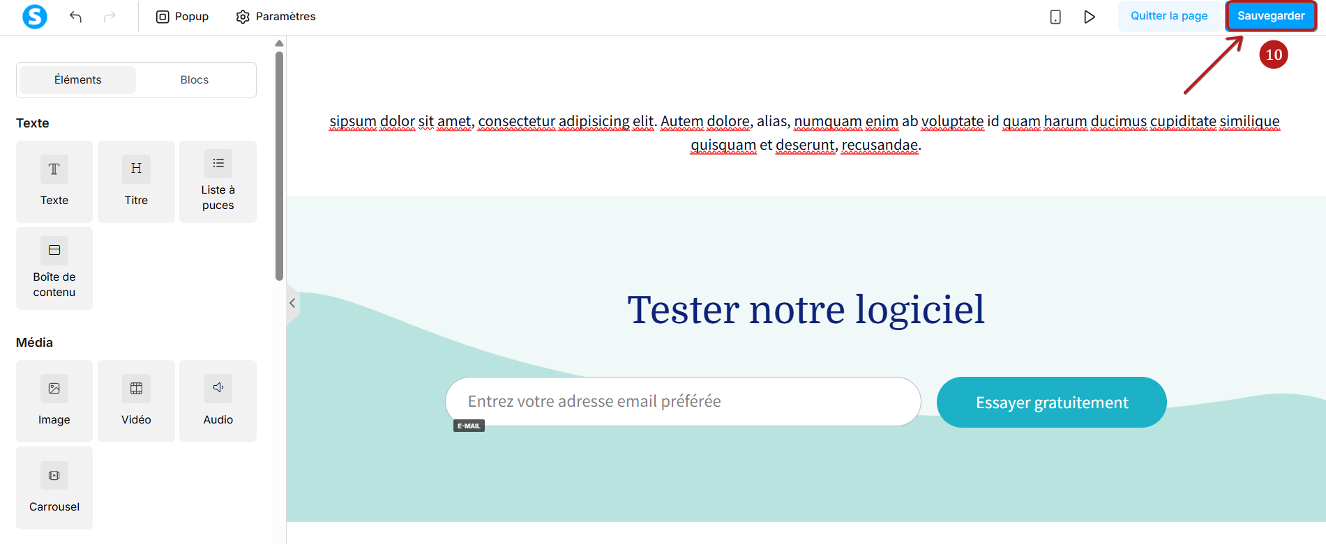 Après avoir terminé, n'oubliez pas de sauvegarder les modifications en cliquant sur "Sauvegarder", en haut à droite de l'éditeur (10).