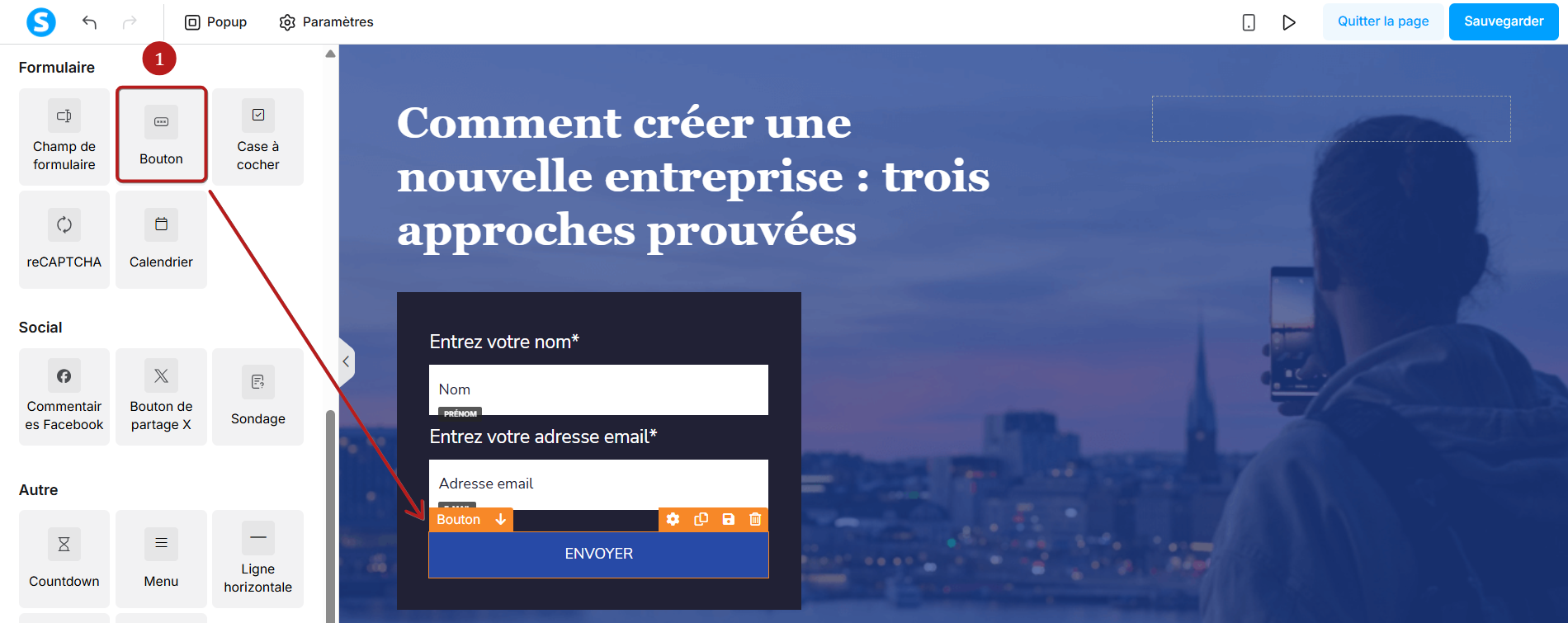 Cliquez sur le bouton qui vient d’être créé pour accéder aux paramètres de votre bouton (2).